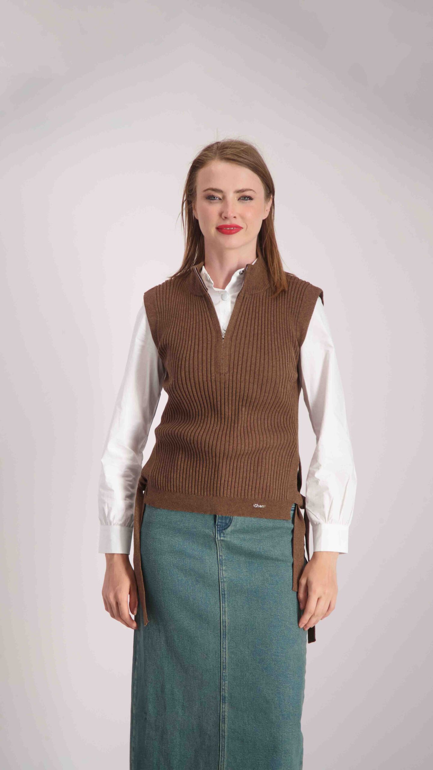 חולצת אפודה רון חום