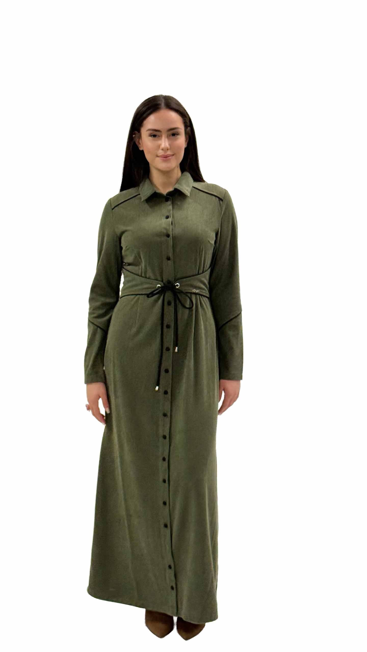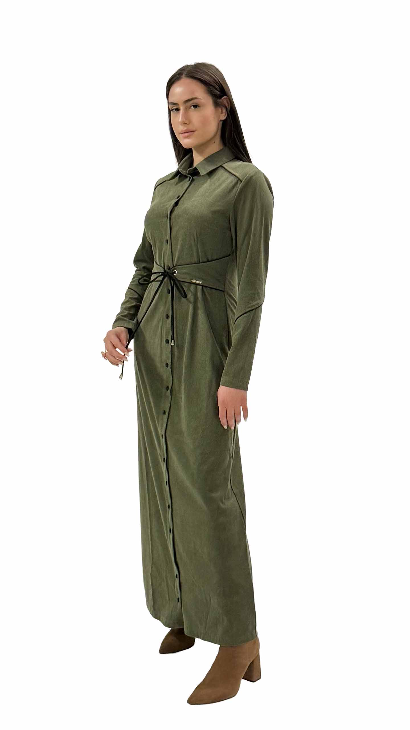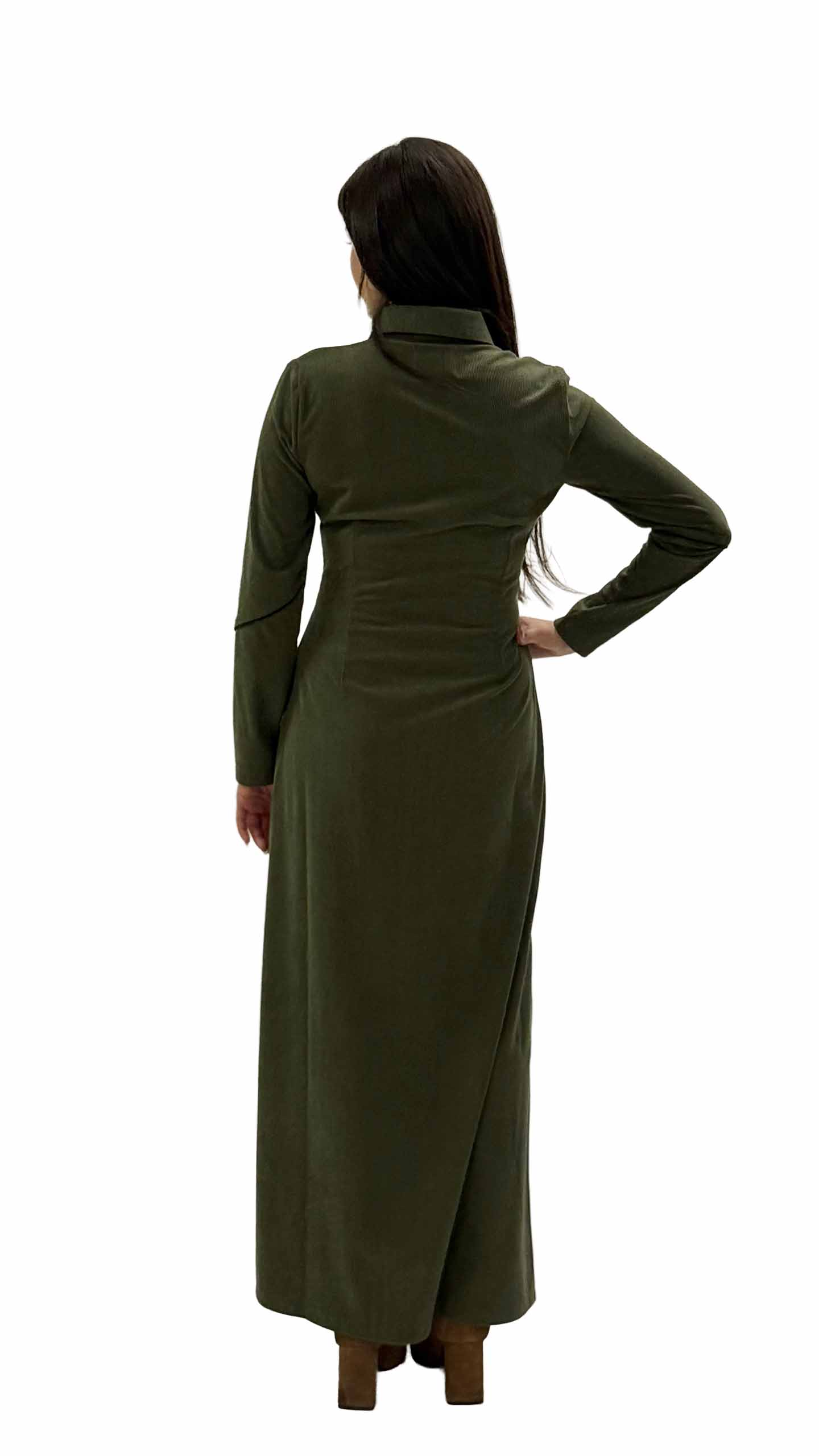 שמלת דבש מקסי ירוק זית