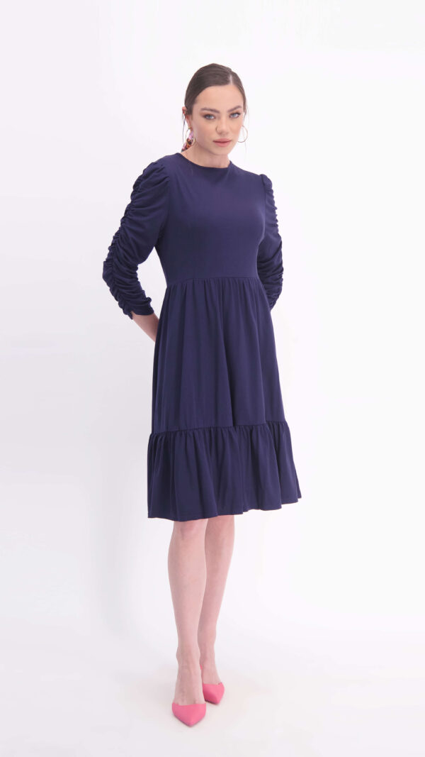 | מידה | היקף חזה | היקף מותן | היקף ירכיים | אורך שמלה |